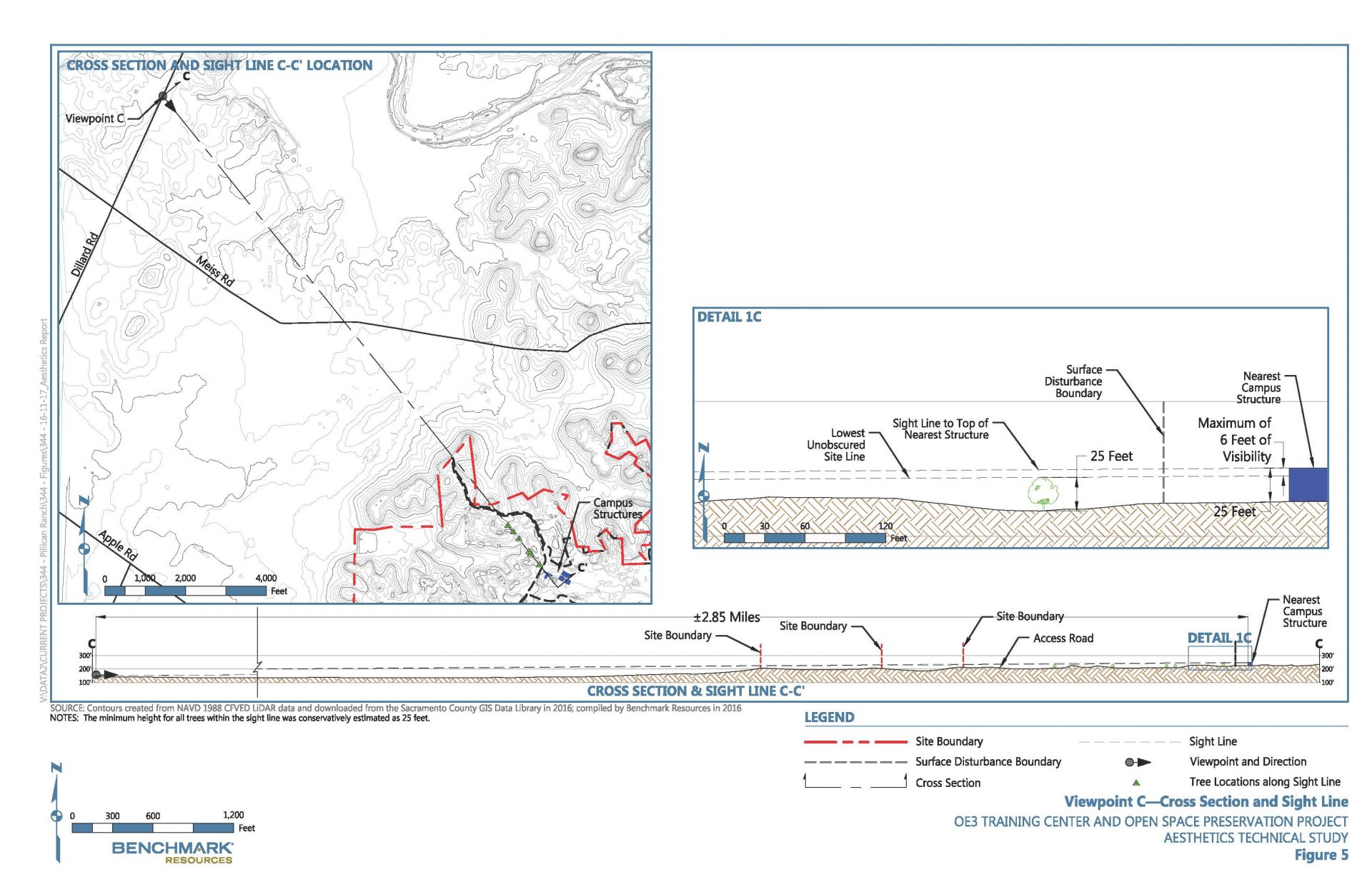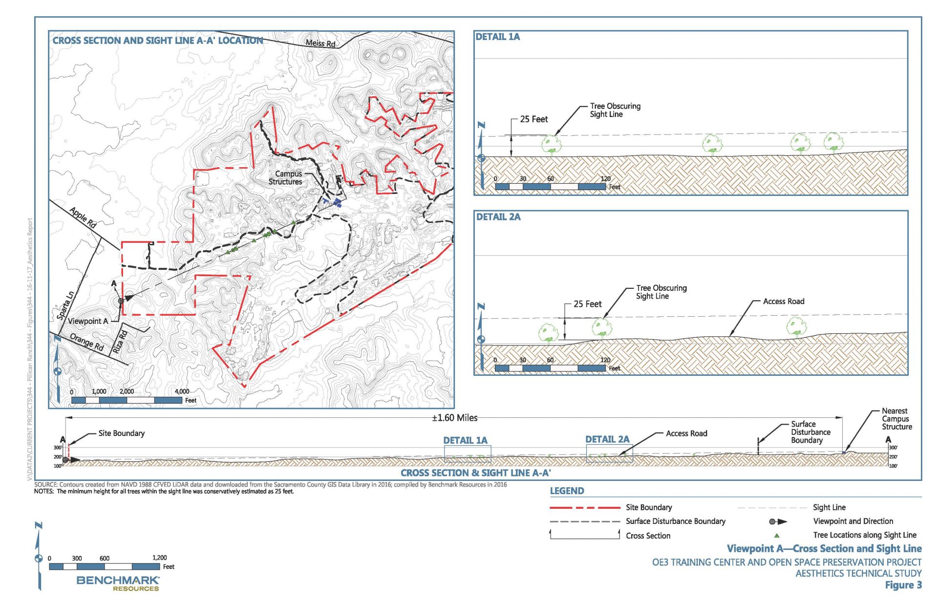 Cross sections convey that the project would generally not be visible from the surrounding area.